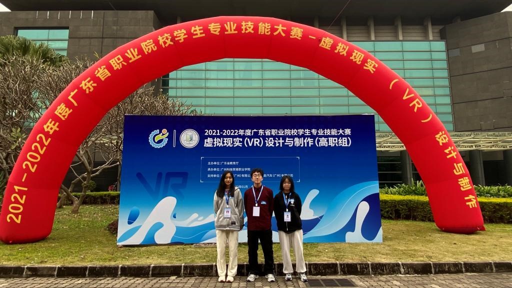 Recently, in the Virtual Reality (VR) Design and Production Competition (Higher Vocational Group) of 2021-2022 Professional Skills Competition for Vocational College Students in Guangdong Province held by the Guangdong Polytechnic of Science and Trade, the team composed of students Qiu Xinyu, Xi Zhipeng and Luo Meihua from the major of Virtual Reality Technology Application of the School of Artificial Intelligence, under the guidance of teachers Teng Yidan, He Guojia and Zhao Zhiqiang, won the first prize in the provincial competition among the 43 teams and successfully entered the selection for national competition.