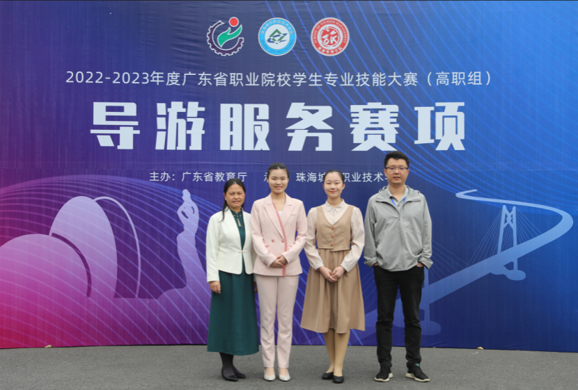 OnApril 7-9, the “Tour Guide Service”segment of 2022-2023 Guangdong Vocational College Student Professional Skills Competition was heldin Zhuhai City Polytechnic. 98 teams from 50 vocational colleges in Guangdong Province participated inthis segment. After fierce competition, Zhu Haiyue (2022) and Zhang Ying (2021),two studentsmajoring intourismmanagement from the School of Managementat SZPT, both won the first prize under the guidance of two teachers Zhang Yue and Jiang Ling.