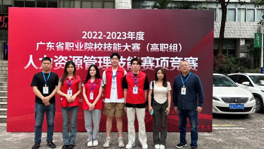 On April 15, the“Human ResourcesManagement Skills Competition” segment of 2023 Guangdong Vocational College Students Professional Skills Competition was successfully completed in Guangzhou CityPolytechnic.Instructed by human resources management teachers Li Yajun and Liu Zhiyong,the studentsWu Yiting, Long Xinxing, Pan Jiehui and Liu Yuhao majoring inhuman resources management and business administration won the first prize in Guangdong Province. The human resources management major has won this prize for 3 consecutive years.