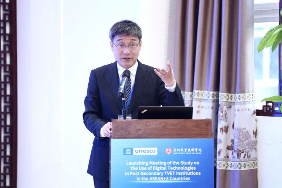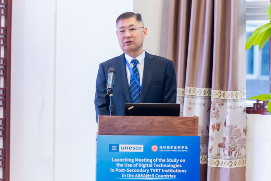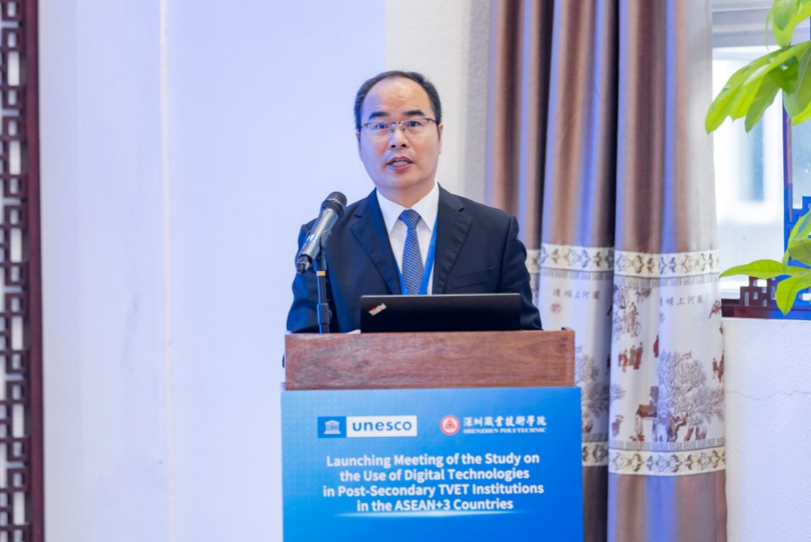 On June 27-28, the Asia-Africa Center of SZPT, in cooperation with the UNESCO Bureau for Education in Asia and the Pacific, held the “Launch Seminar on Digital Technology Application Research of Higher Vocational Education Colleges in ASEAN + 3 Countries”. The seminar was carried out both online and offline. Vocational education officials and experts from the UNESCO Bureau for Education in Asia and the Pacific, 7 ASEAN countries and the Ministry of Education of China gathered in Shenzhen, while vocational education experts from South Korea, Vietnam and Singapore participated in the seminar online jointly conducting in-depth discussions on how to empower vocational colleges and vocational education teachers with digital technology, and promote the digital transformation of vocational education systems in East Asia and Southeast Asia.